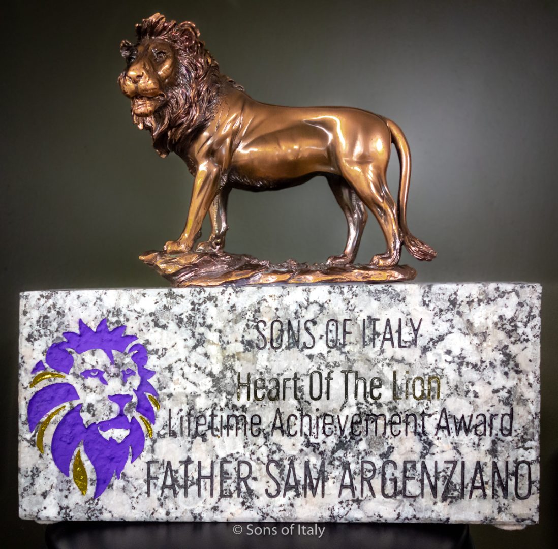 On March 16, 2019, at our 33rd Annual Gala, Father Sam Argenziano received the inaugural Sons of Italy Heart of the Lion Lifetime Achievement Award.
